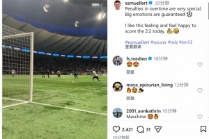 穆勒社媒曬出點射破門的視頻,配文:“補時的點球總是格外特別,現(xiàn)場情緒肯定爆棚。