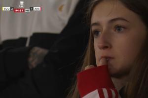 當(dāng)謝赫·查爾斯攻入絕殺球后,球場看臺上的球迷呈現(xiàn)出兩種極端情緒,圣徒球迷興奮狂喜,而鏡頭則拍到有阿森納小球迷拿衣服抹眼淚,父親趕忙送上擁抱和安慰。