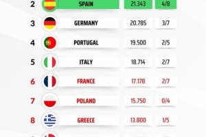 體育資訊4月16日訊 本賽季歐冠8強(qiáng)戰(zhàn)全部結(jié)束,隨著拜仁淘汰皇馬晉級,德甲聯(lián)賽歐戰(zhàn)積分與西甲聯(lián)賽差距縮小。