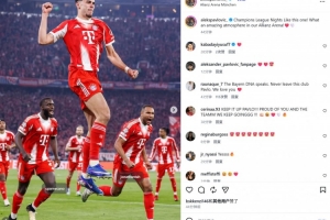 他也在賽后通過社媒曬出自己的慶祝照,并配文:“像這般的歐冠之夜,我們安聯(lián)球場的氛圍太令人難以置信了!”