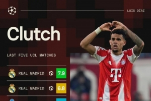 體育資訊4月16日訊 歐冠1/4決賽次回合比賽,路易斯·迪亞斯破門,拜仁主場4-3擊敗皇馬,總比分6-4晉級四強。