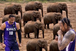 德羅贊愿幫威少跟大象打架??哈登:我愛你們!但我先撤!