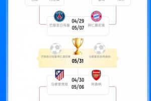 歐冠四強中,上半?yún)^(qū)的巴黎2次進歐冠決賽1冠1亞,拜仁11次進決賽6冠5亞,下半?yún)^(qū)的馬競3次進決賽0冠3亞,阿森納1次進決賽0冠1亞。
