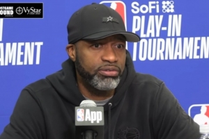 莫斯利:“是的,他們在阻止他進入禁區(qū)方面做得非常好。當他持球時,他們會蜂擁而上。我認為我們必須繼續(xù)做好在他突破時為他創(chuàng)造空間的工作,并且在他遭遇包夾后能將球分出來。但是,你必須給予76人隊充分的肯定,他們收縮防線、保護禁區(qū)做得很好。然而,我們的小伙子們依然在戰(zhàn)斗,他們的精神狀態(tài)很積極,他們清楚我們需要回到主場,在周五的比賽中捍衛(wèi)我們的主場。”