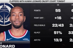 上半場,快船球星倫納德出場20分鐘11投5中,三分4中0、罰球4中4拿到14分6籃板3助攻。