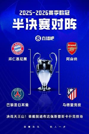 體育資訊04月16日訊 今天凌晨歐冠1/4決賽全部結(jié)束,巴黎、馬競、拜仁、阿森納4隊(duì)晉級半決賽。OPTA超算給出了最新歐冠奪冠概率,阿森納38.58%最高。