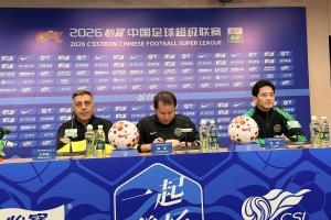 體育資訊04月16日訊 中超第6輪浙江vs北京國(guó)安賽前,浙江隊(duì)主帥阿洛伊西攜隊(duì)員錢杰給出席賽前發(fā)布會(huì)。
