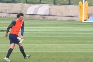 據(jù)“閃電新聞”報道,在今日泰山隊賽前訓練中發(fā)生了有趣一幕,在傳遞球訓練時王大雷突然“前插”,從隊友陳澤仕腳下?lián)屜缕で蚝笸瓿梢荒_射門。