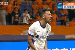 體育資訊04月17日訊 中超第6輪,云南玉昆vs天津津門虎,比賽第41分鐘,天津津門虎首開記錄,基萊斯面對(duì)出擊的門將墊射破門。