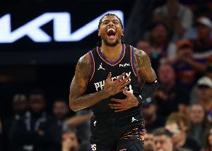 格林:“我認為是的。我們今晚就會知道。從去年的經歷到今年,你學到了很多,特別是在新的環(huán)境中,身邊有布克這樣的人。我覺得這會很好?!?/p>