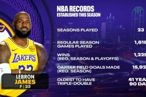 詹姆斯本賽季創(chuàng)造的紀(jì)錄: