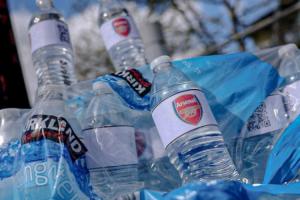 天王山礦泉水!曼城球迷球場外售賣貼阿森納隊徽的礦泉水,2鎊1瓶