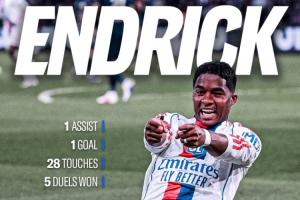 恩德里克上一次為里昂進(jìn)球還要追溯到一個(gè)月前,他在歐聯(lián)杯1/8決賽首回合中為球隊(duì)打進(jìn)絕平進(jìn)球。此后,恩德里克的進(jìn)球狀態(tài)不佳,被法國和西班牙媒體所詬病。如今他在對(duì)陣法甲榜首巴黎的比賽中再次證明了自己的實(shí)力。