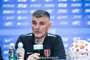 4月20日下午,成都蓉城隊(duì)主教練約翰?阿洛伊西與隊(duì)員馬特烏斯?茹薩出席成都蓉城vs云南玉昆的賽前新聞發(fā)布會(huì)。