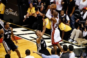 最后19.4秒熱火落后3分,詹姆斯三分不中,波什搶下關(guān)鍵前場(chǎng)籃板,隨后將球交給阿倫,后者在接球時(shí)順勢(shì)撤出三分線,隨后拔起三分,整個(gè)動(dòng)作一氣呵成,球也空心命中籃筐。在隨后的加時(shí)里,熱火氣勢(shì)如虹拿下比賽,并在搶七中戰(zhàn)勝馬刺,實(shí)現(xiàn)衛(wèi)冕。
