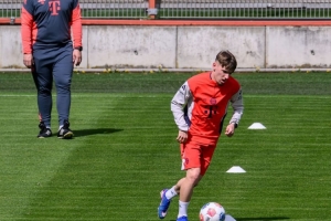 卡爾正在進(jìn)行有球訓(xùn)練。為了做好準(zhǔn)備,這位進(jìn)攻型中場在周一——球隊休息日,也是在奪冠后的第二天——在康復(fù)教練本杰明·索默的指導(dǎo)下,于塞貝納大街的訓(xùn)練基地進(jìn)行了一次額外的訓(xùn)練。上午10點(diǎn)03分,卡爾精神抖擻地踏上了球場。在30分鐘的訓(xùn)練中,這位德國國腳在訓(xùn)練中肌肉拉傷11天后,首次能夠進(jìn)行帶球練習(xí)。這位進(jìn)攻天才在恢復(fù)跑步兩天后,就已經(jīng)能夠繞著迷你錐進(jìn)行帶球訓(xùn)練了。隨后,他進(jìn)行了多次不同速度的跑步練習(xí),并進(jìn)行了穩(wěn)定性訓(xùn)練。