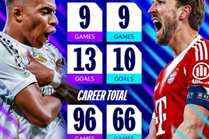 本賽季,姆巴佩和凱恩均在歐冠中出戰(zhàn)9場比賽,姆巴佩打進13球,凱恩則打進10球。職業(yè)生涯迄今為止,姆巴佩96場歐冠打進68球,凱恩則是66場歐冠打進50球。