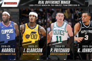 上述4人中,除凱爾登外都拿到了當(dāng)賽季的最佳第六人。