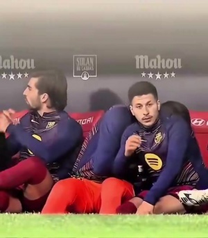 體育資訊04月07日訊 西甲第30輪,巴薩2-1擊敗馬競(jìng)的比賽中,有攝像頭拍到了替補(bǔ)席上的什琴斯尼讓小將巴德吉打掩護(hù),自己側(cè)過身去吃了點(diǎn)什么東西。