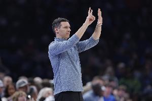 體育資訊4月8日訊 雷霆客場再戰(zhàn)湖人,賽前主教練戴格諾特接受采訪。