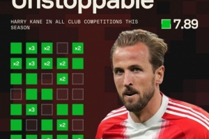 據(jù)Sofascore統(tǒng)計,凱恩本賽季為拜仁出戰(zhàn)41場比賽,打進(jìn)49球,僅10場比賽未破門,從未連續(xù)3場比賽無進(jìn)球。