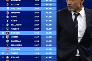 以下為意甲各隊(duì)主教練具體年薪情況: