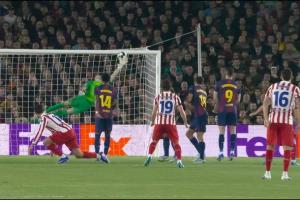 體育資訊04月09日訊 歐冠1/4決賽首回合,巴薩對陣馬競。45分鐘,阿爾瓦雷斯任意球世界波破門,馬競1-0領(lǐng)先巴薩。