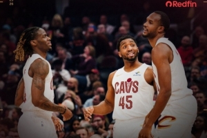 賽后球隊官方發(fā)布贏球海報,封面為米切爾、莫布里和埃利斯。