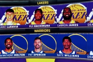 本場比賽勇士的首發(fā)是波杰姆斯基、梅爾頓、斯潘塞、內(nèi)威、追夢。