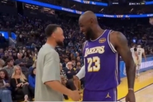 致敬老對手!庫里今日入場時穿著詹姆斯經(jīng)典戰(zhàn)靴LeBron 10