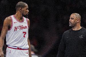 本賽季,杜蘭特(37歲193天)出戰(zhàn)77場(chǎng)比賽,場(chǎng)均上陣36.3分鐘聯(lián)盟第三高(僅次于馬克西和阿門),能得到25.9分5.4籃板4.7助攻。