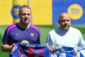 合影在巴薩一線隊(duì)訓(xùn)練結(jié)束后,于比拉諾瓦球場(chǎng)的草坪上進(jìn)行,兩人在鏡頭前展現(xiàn)出十分融洽的氛圍。在合影尾聲,弗里克還像往常一樣展示了自己挑選的球衣,印有6號(hào)的加維球衣,并詢問(wèn)對(duì)方穿的是哪件。馬諾洛隨即亮出了西班牙人藍(lán)白條紋、印有傳奇球員達(dá)尼?哈爾克21號(hào)的球衣。