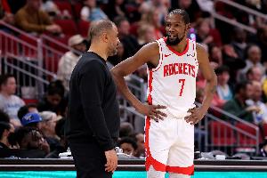 賽前,火箭主帥烏度卡接受了記者采訪。當(dāng)被問及杜蘭特本賽季出戰(zhàn)總時(shí)長聯(lián)盟第二(僅次于阿門),而在負(fù)荷管理的時(shí)代,這說明了什么時(shí),他說道:“這說明他熱愛比賽,不想錯(cuò)過任何一場比賽,也不想缺陣?!?/p>