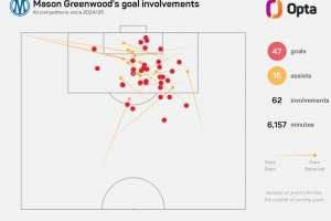 格林伍德加盟馬賽以來(lái)出戰(zhàn)76場(chǎng)比賽,參與62粒進(jìn)球。