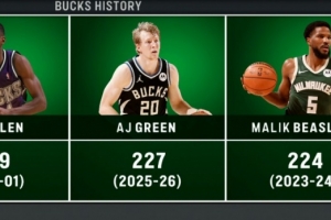 至此他本賽季命中227記三分,超越馬利克·比斯利升至隊史第二,僅次于雷·阿倫的229記。