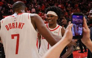 杜蘭特:“是的,我的意思是,我很喜歡他的侵略性,而且效率很高,只投丟了五六個球。對他來說這是一個美妙的夜晚,他在場上無所不能,搶籃板、傳球、防守,還投進(jìn)了一些中距離。這對他來說是一場出色的比賽?!?/p>