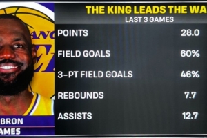 在最近的三場(chǎng)比賽中,詹姆斯場(chǎng)均28分7.7籃板12.7助攻,投籃命中率60%,三分命中率46.2%。