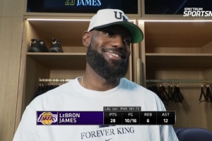 體育資訊4月11日訊 今日,湖人101-73主場大勝太陽,迎來兩連勝。賽后,湖人球星詹姆斯接受了采訪。