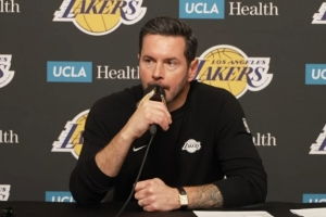 JJ·雷迪克:“我想說,我為我們的球隊(duì)感到無比驕傲,為我們的球員和教練組在這個(gè)漫長的NBA賽季中所展現(xiàn)出的應(yīng)對能力而自豪。我覺得,每個(gè)賽季可能只有那么一兩支球隊(duì)沒有經(jīng)歷太多起伏,他們的賽季軌跡像過山車一樣平穩(wěn)。但對于絕大多數(shù)NBA球隊(duì)來說,從失敗中觸底反彈的能力,才是決定你整個(gè)賽季成色幾何的關(guān)鍵。你期望能贏下50場以上的比賽,期望能獲得季后賽首輪的主場優(yōu)勢,成為上半?yún)^(qū)的種子球隊(duì)。我知道,賽季初在座的各位沒人看好我們能進(jìn)前四,這就是現(xiàn)實(shí),多數(shù)人都覺得我們頂多是支附加賽級別的隊(duì)伍,甚至更糟。所以,我們不僅要承載外界對湖人這支球隊(duì)的期望,還要消化每一次輸球后自然伴隨而來的負(fù)面情緒。我覺得我們的團(tuán)隊(duì)在這方面應(yīng)對得非常出色?!?/p>
