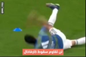 皇馬賽前熱身,卡瓦哈爾傳球時不慎滑倒在地,隨后起身踩了踩草皮,巴爾韋德在一旁偷笑。