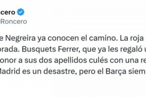 《阿斯報》主編、皇馬球迷龍賽羅社媒寫道:“內(nèi)格雷拉的繼承者們已經(jīng)摸清了門道。這是本賽季至今最明顯的紅牌。布斯克茨·費雷爾——這位已經(jīng)在巴列卡斯送給過他們一個點球的裁判——用一次可恥的改判,完美地印證了他的兩個帶有巴薩色彩的姓氏,皇馬表現(xiàn)確實糟糕,但巴薩永遠(yuǎn)是12人作戰(zhàn)?!?/p>