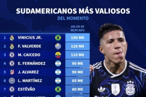 南美球員身價榜:維尼修斯1.5億歐居首,巴爾韋德1.2億歐次席