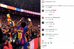 亞馬爾也在賽后通過社媒曬出自己在諾坎普坐廣告牌的霸氣慶祝照,并配文:“巴塞羅那是紅藍色的?????。『屯R粯?,是時候接受現(xiàn)實了?!?/p>