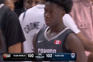 本場(chǎng)比賽,世界隊(duì)球員、加拿大未來(lái)之星薩德勒出場(chǎng)43分鐘18投10中,三分5中3、罰球10中6空砍全場(chǎng)最高29分外加4籃板7助攻2搶斷,也有最多的11次失誤,正負(fù)值-4。