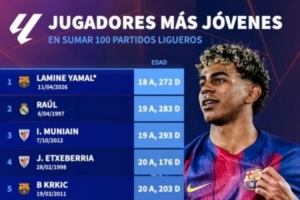 達(dá)成西甲100場(chǎng)最年輕球員排名:
