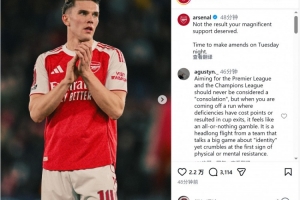 阿森納官方社媒曬出球員們謝場的照片,配文:“你們的傾力支持沒有換來應(yīng)得的結(jié)果,周二晚上(客戰(zhàn)葡體),我們會彌補這一切?!?/p>