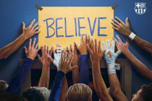 賽前,巴薩官方社媒,曬出全員用手觸碰“相信”標(biāo)語(yǔ)的海報(bào),借用了美劇《足球教練》中的梗。