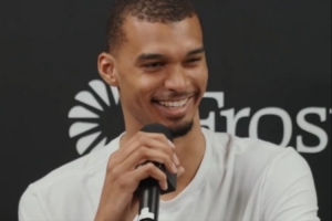 本賽季,文班攻防兩端表現(xiàn)高效且極具統(tǒng)治力,他出戰(zhàn)64場,場均可以得到25分11.5籃板3.1助攻1搶斷。他場均可以送出3.1記蓋帽,榮膺本賽季聯(lián)盟蓋帽王(季中錦標(biāo)賽決賽不算常規(guī)賽出場次數(shù),但計(jì)入65場評獎(jiǎng)資格)。
