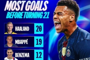 體育資訊4月14日訊 歐冠官方統(tǒng)計了U21球員的歐冠歷史進球情況,哈蘭德力壓姆巴佩居首。