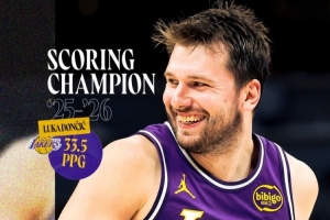 據(jù)湖人官方統(tǒng)計(jì),在過(guò)去的三個(gè)賽季中,東契奇第二次榮獲得分王。他是NBA歷史上第20位多次獲得得分王的球員。他也是湖人隊(duì)史第五位獲此殊榮的球員,上一位是科比(2006-07賽季)。